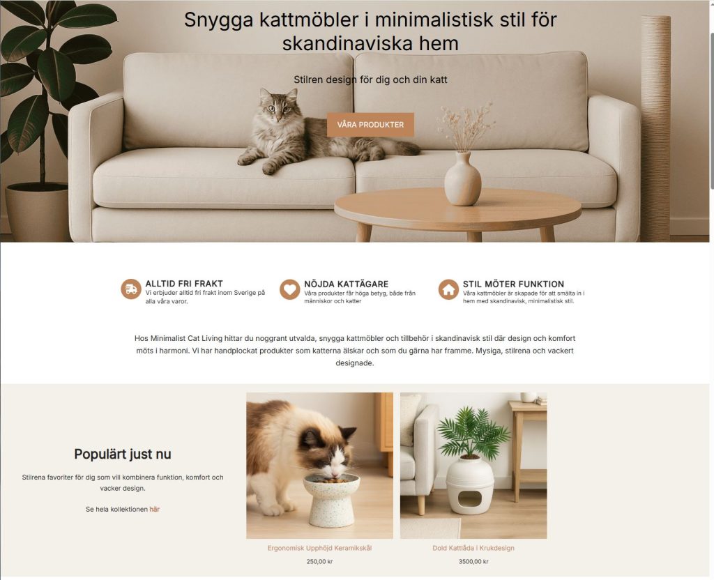 En nischad e-handelsbutik för stilrena kattmöbler i skandinavisk design. Jag skapade hela varumärkeskonceptet, byggde butiken i Shopify och skrev konverterande produktbeskrivningar för både SEO och köpupplevelse.
